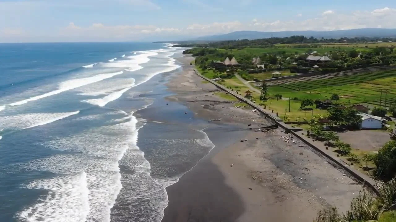Now you are getting as far away as it gets! Pantai Tianyar Beach is a scenic black sand beach located on the island of Bali, Indonesia, in the shadow of the imposing Mount Agung. The beach offers a picturesque sight, with traditional Balinese fishing boats adorning the shoreline and the towering volcano providing a dramatic backdrop, making it an unmissable attraction for visitors to Bali. The beach also offers a unique opportunity for drone enthusiasts, with breathtaking aerial views of the ocean, beach, and the majestic Mount Agung.